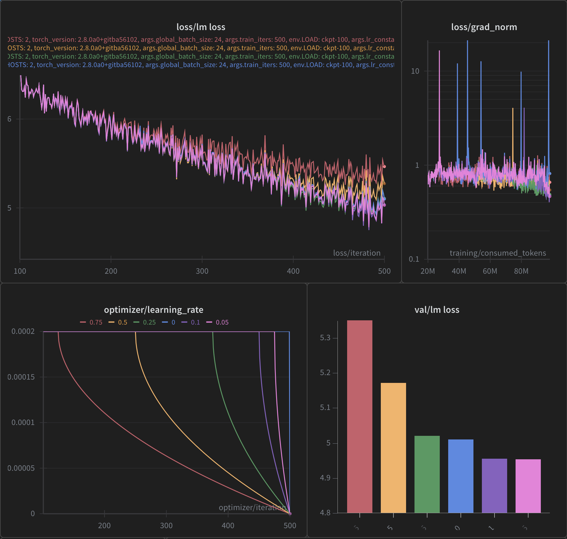 ROPE_THETA=50000 \ GRAD_ACC_STEPS=2 \ MICRO_BATCH=1 \ USE_ACTIVATION_CHECKPOINTING=0 \ ZERO_STAGE=0 \ TRAIN_TOKENS=4673780159710 \ OPT=sophiag \ DATA_FILE_LIST=ALCF/data-lists/aurora/olmo-mix-1124.txt \ LR_DECAY_STYLE=constant \ LOAD=cooldown-checkpoints/sophiag-global-step-73500/global_step73500 \ bash train_alcf.sh \ --no-load-lr-state \ --lr_constant_plus_cooldown \ --lr_constant_plus_cooldown_frac 0.10