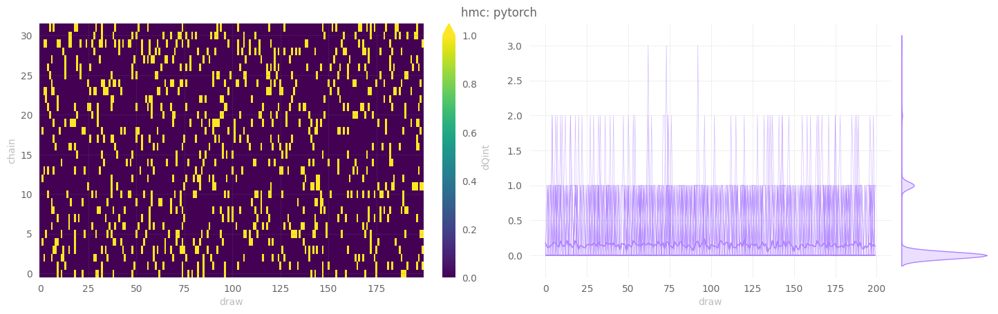 console.print(f"PyTorch, HMC\n dQint.sum('chain'):\n {dqh.astype(int).sum('chain').T.values}")